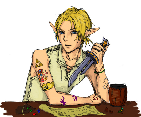 こないだムジュラの仮面、何度目かのクリアを果たした、楽しいだ、リンクかわいいだvvやっぱトワプリ欲しいな~@ゼルダとか、メタルギアとか、凄すぎて1ハード1ソフトみたいなゲーム、いい★スマブラXやりたいよぅ・・・ちょっと前にまだまだスマデラの我が家は、条件忘れてステージ最後の一個サイト見てやっと出して、サウンドテストも出て、どんな時に発する声なのか聞いたことのないリンクの声がエロすぎてどうしようかと思いました・・・OTL(眩暈)ところで↑リンクぐれすぎだよ、勇者じゃなくてチンピラ(汗)。ピアスとタトゥーは楽しくて止まらないだよ・・・♪いいじゃん時のオカリナじゃ盗賊の仲間入りした勇者なんだから☆もう私の中でリンクのイメージは、決して見つからないようなモノを求めて流離う旅人的な・・・数々の戦いを潜り抜けてきた、若くても屈強な剣士・・・うん★(夢)ゲルドの女と一晩共にしちゃうようなv(爆)人と群れられなくて物っ凄い無口だけど(設定)困ってる人はほっとけない超お人好し☆一度手をつけたら何でもやり尽くさないと気がすまない(チャット談)。小さい頃から好きだったキャラを今になって描くのは特別嬉し楽しいものですね☆フェザーソードのフォルム・・・大好きvv 大人になっても使っててほしい、大人リンクが短剣とかナイフとかハァハァ!!でもフェザーソードって100回だっけ、使うとコキリの剣に戻っちゃうんだよね・・・(涙)。いくら出してもいいから(ゲーム内)、ローン組んでもいいから刃こぼれしないフェザーソードを作ってほしい!!(絶対できるよあの鍛冶屋)クリアデータは完全体の金剛の剣になっちゃってるし、マジでもいっこフェザーソードのためにデータ作ろうかななんて・・・その希少性がいいのかなトホホ・・・orz 武器とか描くのはほんとに刃物を研ぐようで楽しかった!武器か・・・小物とかもな・・・いや全部、ファンタジーっていいよな☆(〆)