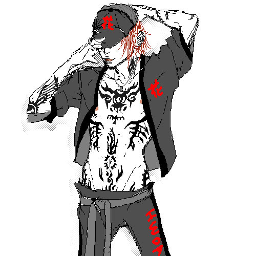 ↑初めて描いたキバの第二部コス♪ファーの次はジッパーというオシャレさんなもののけ王子★上着の丈、ウエストだよな・・・あの部分伸縮しそうな素材だよな・・・ウエストでキュッてやばくね?(私の脳が)忍だからフィットするほうがいいのかなぁと思ったけど、男の子が短い上着きた時のカワカッコ良さを目指したかったという・・・画質悪くなっちまったぜOTL あっ、鎖帷子忘れてるしorz